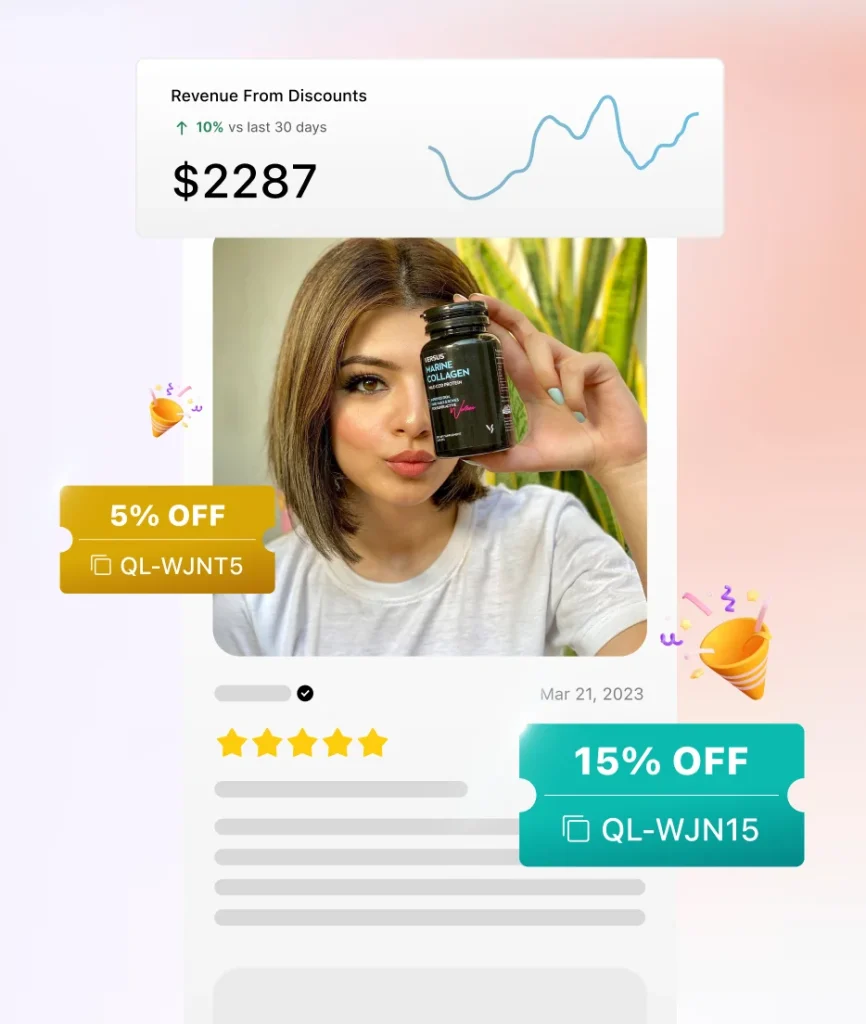 Offer identical discounts to all customers who leave a review, creating a consistent and attractive incentive for text and photo/video reviews.